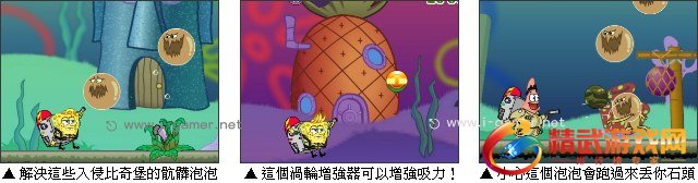 由 Nick.com 创作的海棉宝宝系列游戏 - 海绵宝宝骯髒泡泡,是一款充满趣味性的横向捲轴游戏,游戏整体配色鲜丽活泼,充满了浓厚的卡通风格,使得原本紧凑刺激的气氛不时穿插着许多趣味性的剧情。游戏中海绵宝宝与派大星要对抗入侵比奇堡的邪恶骯髒泡泡,使用超级吸尘器来解决牠们吧!