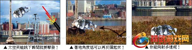 太空笑蛙是一款趣味搞笑游戏,目的是用枪将太空笑蛙射出。笑蛙跳下来瞬间就要击发,如果拿捏恰当让牠着地角度够低就可以再反弹起来继续滑行,你能射多远ㄋ!