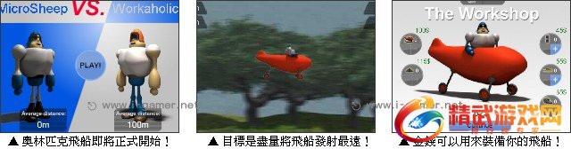 游戏操作:以滑鼠操作,第一次按左键是控制飞行角度,再来则是控制飞行力道。