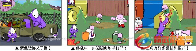 紫色恐怖是一款行横向捲轴的动作过关游戏,游戏中有一堆绝技和招式,还有很多随手可得的武器,而游戏的目的就是一路与小朋友打斗,最后打倒跳街舞的小子。