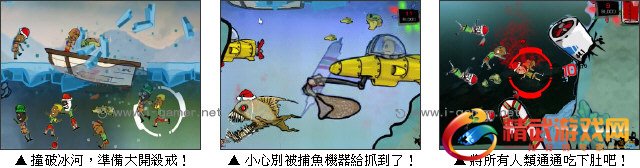 恐怖食人鱼冰河版推出了,一群探险家到了冰河地区探索到未知的领域,正当他们沉浸在成功的喜悦时,他们不知道死神的镰刀已经挥向了他们。游戏中玩家要操控食人鱼穿破冰块,掀翻船只并将掉入水里的倒楣鬼一一吃掉,同时小心不要被捕鱼潜艇给抓到啰。玩家们快来用最兇猛的态势去消灭那些可怜的人吧!