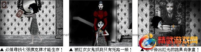 玩家在迷宫中会随机遇到红衣的女鬼,此时只有转头快跑,否则就会丧命!游戏以黑、白、红三色为基调,在加上手绘式的素描画风,强烈的风格令人印象深刻,尤其是模拟的烛光,限制了玩者的视线範围,让玩家承受不小的恐惧压力,算是一款相当成功的恐怖小品,你能够顺利解开谜团,逃脱生还吗?