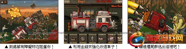 游戏中,生化危机大规模爆发,整个城市已被丧尸佔领,约翰逃到加油站时,从电视上获得了军方发布的资讯,军方呼吁所有倖存者朝东部军事基地聚集,他们将带领倖存者撤离到安全区域,于是约翰再次组装了战车,开始了这危机四伏的旅途游。戏提供了三种不同类型的战车可以选择,玩家在每次驾驶之后都会根据消灭的殭尸数量来获得金钱,可以用这些资金来强化战车,像是加强引擎马力或是装载武器等。快坐上战车与约翰一同冒险吧,故事模式完成后还可以进入挑战模式哦!