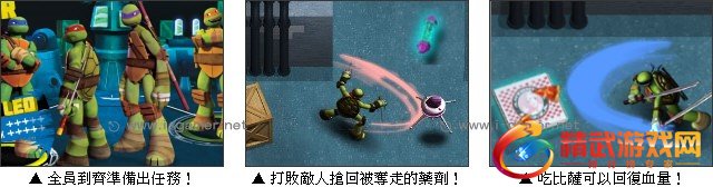聪明又勇敢的忍者龟又要出任务了!这次有坏人偷走致命病毒药剂,準备造成大量的伤亡,企图引发世界恐慌,忍者龟们潜入敌人的秘密基地,打算夺回这些药剂,玩家可以从四位有特色的角色选择一位操作,除了所使用的武器不同外,能力也有所差异,快来帮助忍者龟们夺回药剂吧!