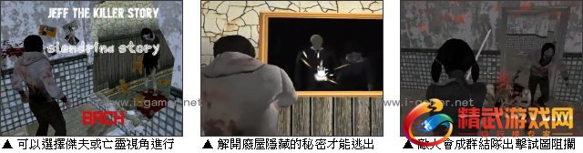 同样作为美国都市传说中的恐怖杀手,若杀手杰夫(Jeff the Killer)和瘦长人家族中的女性亡灵(Slendrina)正面交锋的话,到底哪方会更胜一筹呢?这个奇妙的问题,也许这款《杀手杰夫vs亡灵》能够为好奇的你稍微解惑唷!在游戏中,玩家可以自由选择要以杰夫或亡灵的视角来进行故事,而两者除了所在地点、指定物品不同外,后续进行的方法都相同唷!说简单点就是利用手上的武器将不断冒出的敌方消灭,并且敲开一道道紧闭的门,集齐杰夫的照片或是亡灵的玩具熊,挖掘出隐藏秘密来击溃对手,最终重获自由!