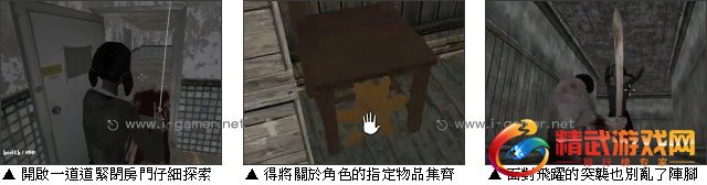 游戏操作:以键盘 WASD 键或方向键移动,F 键拿取物品、开门,Shift 键奔跑,空白键跳跃,Ctrl 键蹲下,X 键趴下,滑鼠左键攻击,滚轮切换武器。