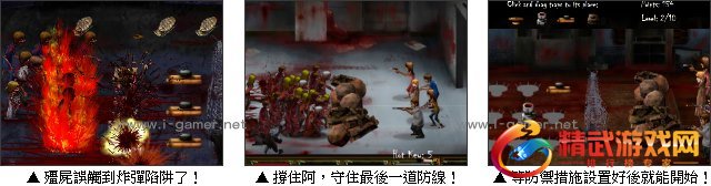 游戏中玩家将面对一波波殭尸的攻击,必须延着地图一路闯关,玩家可以运用下方列表的武器对他们展开攻击,开始游戏会先设定好你的防御堡垒,但在接下来的关卡你就得利用限有的分数点来购买防御设备、陷阱与武器,待一切就绪后就能开始来攻陷殭尸大军!
