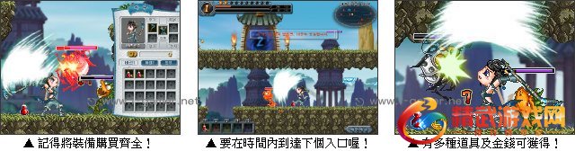 游戏操作:以键盘方向键 ← → 操作主角移动,↑键跳跃,↓键防御,空白键与NPC互动及进出入口,Z键攻击,Q、S、C键功能介面,I键打开背包。 PS:游戏档案很大 (18.1M),载入时请耐心等候!