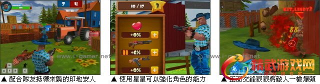 而游戏进行的方式很简单,玩家作为农民(蓝队)代表,需要对抗入侵农场的印地安人(红队)!尽可能与你的队友们互相搭配,消灭这些不速之客!要注意的是,击中不同部位,对手的掉血量也会有差异,玩家若能抓準机会,一枪爆头,不仅可以大幅降低受伤的可能,还能在最后结算时获得额外加分唷!究竟在限制时间内,你能拿下几颗人头呢?现在就来试试吧!