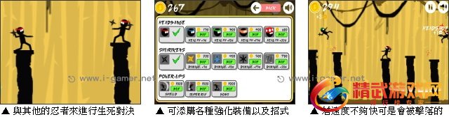 想要成为《最后的忍者》,就必须打倒其他的忍者们,与其他不适好歹的忍者在高处来场手里剑胜负吧!游戏中玩家要向其他忍者们投掷手里剑,只要打中敌方的头部抑或是击中其他部位造成足够伤害即可打倒对方!然而敌方也不是标靶,他们也是会进行反击的!游戏中也没有闪躲机制,所以速度比对方快成了获胜不二法门!若是不小心失败了,就来升级一下自己的装备吧,你是否能成为最后的忍者呢?