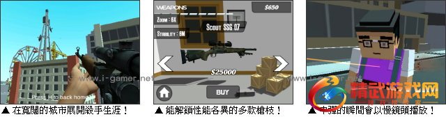 在《我的世界狙击手》游戏中,玩家可以自由选择要在城市区或农村区进行任务!但无论要狙击的目标是动物或人类,玩家都得留意任务需求的数目,以及当前剩余的可用时间,随时把握进度,才能完美的达成唷!另外,随着通过的考验越多,玩家不仅需要处理的对象会递增,甚至範围也会变得更大更远,手边的狙击枪表现也可能会从优秀慢慢下滑至堪用甚至累赘,而此时就是前往商店选购新伙伴的时刻喽!只要利用任务中赚取的奖金,玩家就可以解锁性能更强大的狙击枪啦!但若解到一定程度,荷包却还是空空,玩家就得反省下每次射击时的部位是否有差错喽!喜爱狙击类型游戏的玩家,现在就来挑战一下吧!