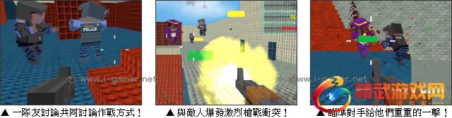 游戏操作:以键盘 W、A、S、D 键操控人物移动,以滑鼠进行瞄準与射击,滑鼠右键精确瞄準,数字键 1~3 切换武器,Ctrl 键蹲下,空白键跳跃,Shift 键奔跑,T 键呼出发言窗口,Enter 键发送资讯,Tab 键呼出菜单。