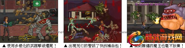 贾桂琳和米格尔是职业佣兵,专门替人消灾解难,这回他到了一个毫不起眼的小镇,这个小镇开出天价徵求英雄替他们清除殭尸,理由是之前来过的佣兵全都有去无回。游戏中击倒殭尸会出现许多武器让你使用,龙舌兰酒条满格后可以使出大招,更有商店,里边拥有很多重型武器,玩家们赶紧进入游戏,开始这场屠杀殭尸的战斗吧!