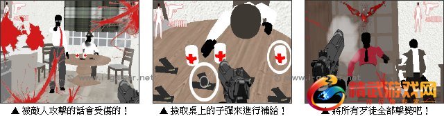 游戏操作:以滑鼠瞄準射击,空白键使用补血包,R 键更换子弹。