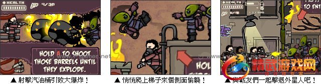 末日地球反击战是一款射击闯关游戏。在西元某年,外星人侵略占领地球,并释放有毒气体在空气中,地球生物面临灭绝的危险,倖存者们只能躲在地下室暂时过活。但他们已经无法再忍受,反击的时刻到了,而你就是倖存者之一,现在就踏上反击之途,展开激烈枪战,夺回自己的家园吧!