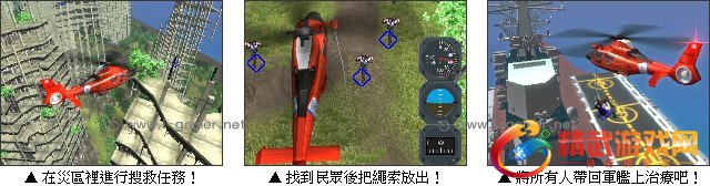 小岛上发生了地震,整座城市都变成了灾区需要救援,政府决定派出救难直升机前往灾区进行搜寻,游戏中我们驾驶海豚 HH65c 型号的直升机,务必要在时间内救出那些受到天灾威胁的人民。由于游戏模拟的太过真实,初次接触直升机的玩家在操作上要先熟悉一下哦。