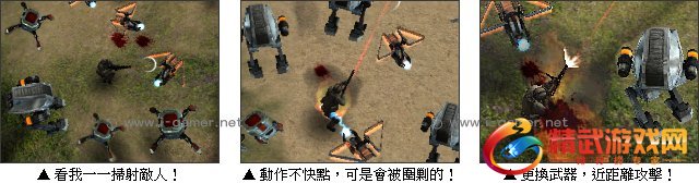 游戏操作:以键盘方向键操作移动,滑鼠左键射击 / 右键引爆地雷,数字键 1、2、3 键换枪,空白键扔地雷。