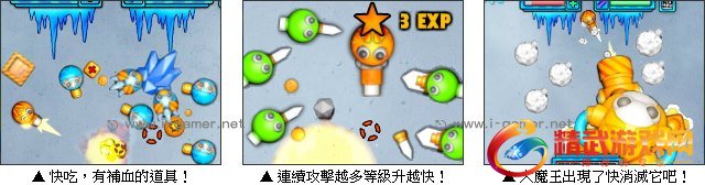 游戏操作:以键盘方向键操作小球移动,滑鼠瞄準射击,空白键技能,P 键暂停。过关后点击SHOP进入商店购买装备,点击 SKILLS 加技能点,点击 MAP 回到地图。