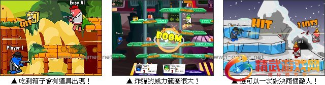 混乱枪战的第2部来了,这次游戏的场景和对决方式更加丰富,还可以双人对决,先歼灭掉对方即可获胜,场上不时还会出现道具箱可补充资源,快找朋友们一起加入混乱枪战吧!
