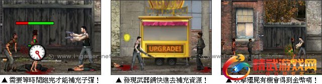游戏操作:以键盘方向键操作主角移动,滑鼠瞄準射击,R 键上子弹,数字键 1~6 选择武器,E 键跳过对话。