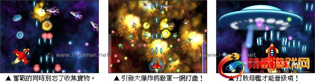 星际指挥官是一款飞行射击游戏,游戏速度较缓慢,在操作方式也简单许多。当右方闪电能量条集满时,可点击滑鼠左键引发大爆炸,将画面中敌军全数歼灭。关卡最后必须与母鉴一决死斗,打败敌军母鉴才可进入下一关唷!