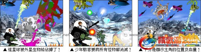 游戏操作:以键盘方向键控制人物移动,滑鼠瞄準射击。