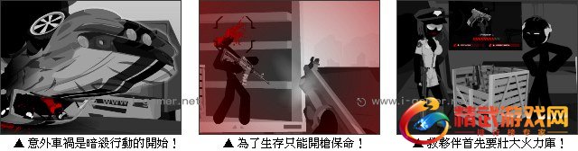 火柴人暗杀行动系列游戏第 3 部火爆登场了。在完成上次的暗杀行动后,主角基罗、温尼和肖蒂决定驾车外出旅游放鬆一下。但在旅游途中,他们却遭遇了敌人的埋伏。意外的车祸,让身受重伤的暗杀三人组是否能顺利突破敌人的包围,找出这一切的幕后主使者呢?