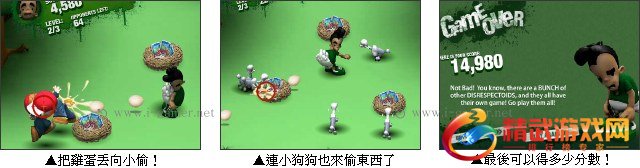 游戏操作:以滑鼠操作控制点击左键丢出鸡蛋,空白键补鸡蛋。