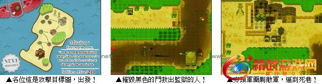 方头人的军队的侵略,随着游戏的进行,会开启模拟战场的系统,玩家在剧情中经历过的战场,都可以在这个模拟战场重新体验。在这里,玩家将面临战场来战斗,并依照模拟战场面对不同敌方的来攻击,战斗中获得的弹药,炸弹累计战力,摧毁营房敌人就不会再出来,摧毁监狱即可放人,点我方军人可以集合或分散部队,即使战斗失败也可以重新再出发。