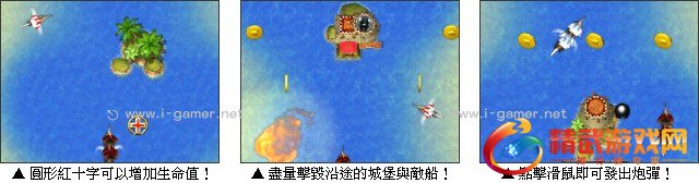 游戏操控:方向键中的左右键可以移动战舰,方向键中的上下键调整大砲射击角度,空白键可以发射武器。