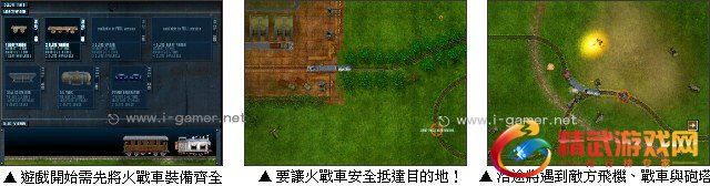 游戏开始玩家需先选购火车头,然后装备货车箱及平台车箱,平台车箱可以加装货柜或是砲塔 ( 刚开始只有一种砲塔可选择 )。装备完成后就可以出发了,玩家的目标就是要让火战车安全抵达目的地,沿途将有敌方的飞机、战车与砲塔攻击你,必须避开或是将之击毁才能安全到达。( 此游戏档案不小请网友耐心等待 )