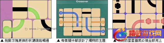 游戏随着关卡破解的越多,难度也会逐渐升高,所谓牵一髮动全身,除了方块或需要连通的线路数量变多,某些时候还会出现拥有星星记号的方块呢!而一旦出现,玩家除了如同之前连接线路外,还得要将星星方块都用上才行唷!现在就来挑战看看吧!