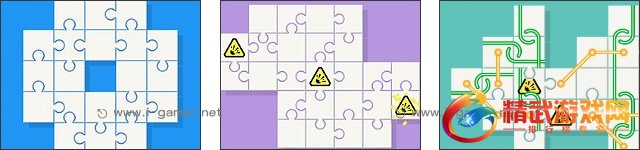 游戏操作:以滑鼠操作进行游戏,拖曳小白块往正确的方向移除。