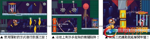 恐龙公主外出游玩时,被一群恐龙海盗抓走并关起来,国王非常着急,公开徵求勇士拯救公主,这时英勇的恐龙大侠决定奋勇起身前往救援。游戏以弹射的方式进行移动,玩家要适时瞄准、调整力道,然后飞出去,过程中需要巧妙的闪避陷阱并触发机关来通过关卡,集满三把钥匙就可以解开牢笼拯救恐龙公主。现在就与恐龙大侠展开救援之旅吧!