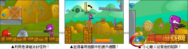 游戏操作:以滑鼠点击移动物品,再次点击放下物品(物品和人物间不能有阻隔),键盘 A、D 键控制移动,W 键跳跃,E 键乘坐道具,R 键重新闯关,空白进入下一关。