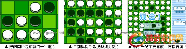 黑白棋,又叫翻转棋,十九世纪末由英国人发明的斗智棋盘游戏,复杂程度低但是策略成分却相当高的棋艺。游戏中玩家要想尽办法让自己颜色的棋子佔领整个桌面,最后总结场上较多棋子的一方就能获得胜利。一开始落后别太气馁喔!因为可能随便一步便能逆转锁定胜局。喜欢棋盘游戏的朋友赶快来挑战看看吧!