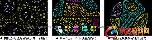 游戏操作:以滑鼠操作游戏进行,点击要更换颜色的区域即可。