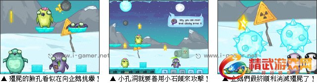 南极的气候变化越来越快,某次意外中,企鹅们受到变种病毒的侵蚀,部分企鹅突变成了殭尸,眼看南极企鹅们的家园正遭受到灭亡的危机,倖存的企鹅们决定奋力反击,利用身边的武器石头、冰块等等来击垮这些殭尸,玩家们赶快来一同帮助企鹅们恢复家园的宁静吧!