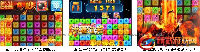 消灭星星火山版震撼来袭,这次增加不同的游戏模式,其中最特别的为疯狂的火山模式,玩家要点击两个或两个以上相同的星星方可消除阻挡火山爆发,另外还有传统模式和消除步数限制的游戏模式,每一种玩法都不同的挑战,快来一起动动脑看谁可以创造最高分吧!
