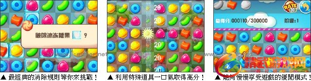 还记得 2013 年 Candy Crush 在全球掀起的一阵手游风暴吗?以其为灵感所创作的益智游戏也各具特色。这款糖果碰碰乐承袭益智消除游戏既有的风格,玩家必须在方格中移动五颜六色的糖果,并且达成各种过关条件,游戏没有点数制或时间的限制,玩家可以尽情的挑战!游戏还内建休闲模式,玩家可以优优哉哉的挑战消除 300000 颗糖果的大关,十分适合消磨无聊时间的玩家。