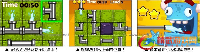 游戏操作:以滑鼠操作进行游戏,进行管线位置交换,成功把水管接上。