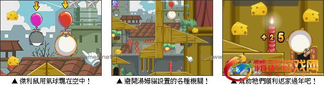 新年即将到来,杰利鼠想要回老家好好休息,可是汤姆猫没打算放过牠,部下了天罗地网想要抓到杰利鼠,你必须运用你的智慧解开各种机关谜题,并收集一路上的起司块才能回家过个好年喔。现在就一起来帮助杰利鼠躲避汤姆猫的追击吧!