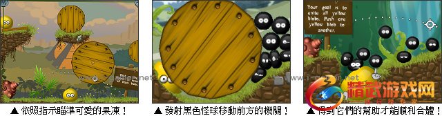 果冻合体推出第2部啰,这次带给玩家们全新关卡,优化了游戏画面,更添加了挑战性喔。可爱的果冻被分割了,为了能够再次合体他们已经做了足够多的努力,但是还是无法做到,现在我们可以发射黑色小球,透过这些小球来消灭障碍物,帮助果冻进行合体成功,射击的次数越少,评分就会越高,赶紧一起来想办法让它们顺利合体吧!