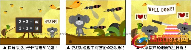 今天是考拉小子的生日,可是一觉起来后它却忘记了自己生日派对的地点,现在我们一起来帮助他寻找派对举行的地方吧。一开始需要你的耐心和眼力来仔细寻找每一个地方,找出有用的物品,来帮助考拉小子解决路上的困难,快来动动脑帮助他能顺利与大家一起庆祝生日吧!