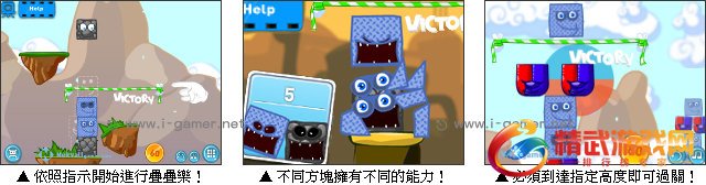 方块叠叠乐是一款有趣的益智过关游戏,游戏中有许多不同种类的方块,例如磁铁方块、炸弹方块、吞噬方块...等,你需要利用这些方块不同的能力来进行推叠,到达一定高度即可过关。过程中如果触碰到危险的机关,会导致方块无法推叠使游戏重来喔。赶紧进入游戏挑战看看吧!