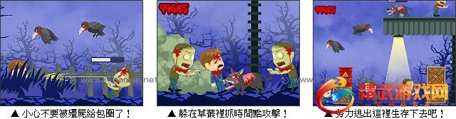 两名员警在黑漆漆的森林里巡啰,结果不知从哪跑出一群殭尸对你们展开袭击。玩家在游戏中必须仔细观察周遭环境,才能躲过殭尸的攻击甚至展开反击,最终才能活着逃出这片森林。为了替同伴报仇,为了周围村庄的安宁,消灭所有的殭尸吧!