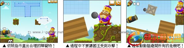 平静的王国突然拉起了警报,侍卫通报说敌军要来对国王进行暗杀,所以我们就来一起保护好国王,帮助他躲避所有的危机吧。玩家的任务就要在游戏画面有限的区块内画出适合的障碍物,来阻挡敌人的炮弹攻击就即可过关,不过铅笔是有限制次数的,所以每一笔都要经过思考与设计,才能让国王安全而不受到攻击。