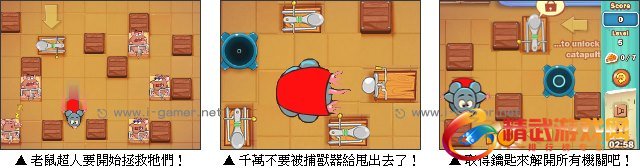 贪吃的老鼠们因为偷吃乳酪失败,被人类给抓住了,为了要拯救牠们,勇敢的老鼠超人决定挺身进行救援行动。沿途中必须要尽快解救所有无辜的小老鼠,并且要随时注意路上的陷阱喔。每个关卡都有它的特定的辅助工具及破关方式,快和老鼠超人一起动动脑,想办法来解救牠们吧!