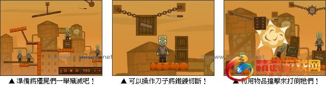 致命铁球3带给大家全新的挑战,场景设置更加复杂,殭尸之间的距离更大。游戏中必须用手中的刀子将铁鍊切断,利用摆动的物理原理使道具成功砸向殭尸,随着关卡的提升,难度会越来越高,其中还会有许多不同的道具及机关等你来运用喔。动动脑将道具发挥它们最大威力,将殭尸一举歼灭,快来挑战看看吧!
