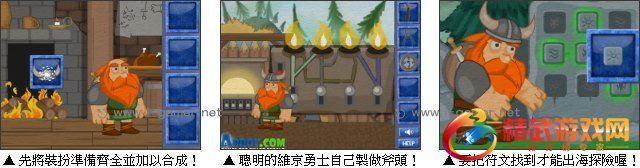 一个非常聪明的维京勇士在一次战斗中被敌人俘虏了,但是他并不是一个甘心等待命运降临的人,所以他决定冒险一次,想办法从敌营里偷偷逃脱出去。游戏中玩家必须在画面里寻找各种道具并加以合成,就能在关键时刻派上用场,顺利过关喔。快来动动脑吧!